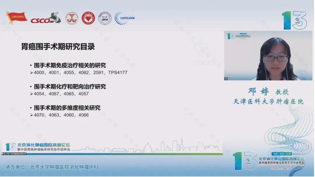 首先,来自天津医科大学肿瘤医院的邓婷教授为大家带来了2023年ASCO胃癌围手术期治疗进展。今年胃癌围手术期研究围绕免疫、靶向及转化治疗以及多维度相关研究报告了丰富的研究结果,有成有败,有喜有忧。ATTRACTION-5的阴性结果使胃癌辅助治疗模式仍停留在化疗阶段,研究的亚组分析引发了大家对潜在获益人群选择及未来研究方向的思考。同时,以紫杉类联合氟尿嘧啶类的治疗方案也为III期胃癌术后辅助提供了新的治疗选择。我们期待胃癌围手术期免疫联合治疗的pCR率提高能够转化为生存优势,同时也期盼围手术期化疗联合曲妥珠单抗令人振奋的初步结果能够得到进一步III期试验验证。此外,创新的手术模式、辅助治疗的AI预测模型、液体活检的复发预测、基于cfDNA检测的胃癌早期筛查能否改变临床实践,也期待大样本的研究进一步证实。